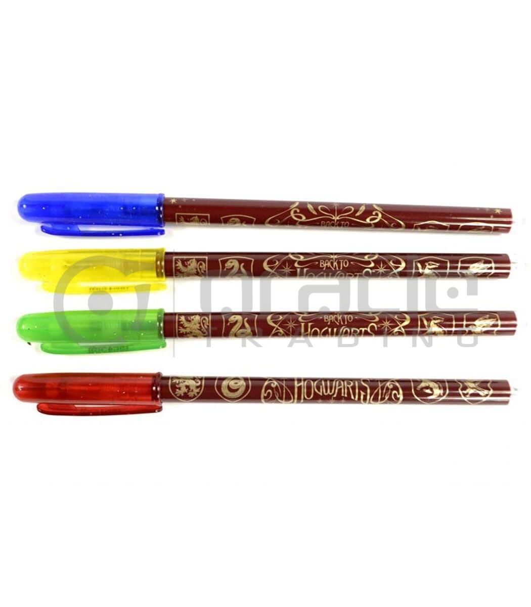 This Harry Potter Gel Pen Set brings Hogwarts magic to writing with four distinct house-themed colours. Each officially licensed pen represents Gryffindor Hufflepuff Ravenclaw and Slytherin in smooth-flowing gel ink. Perfect for wholesale buyers serving Harry Potter fans these pens arrive in retail-ready packaging. The durable construction ensures reliable writing while celebrating house pride. Suitable for themed retail displays school supply sections and magical gift selections these pens appeal to wizarding world fans of all ages. A practical addition to any Hogwarts-themed stationery collection.