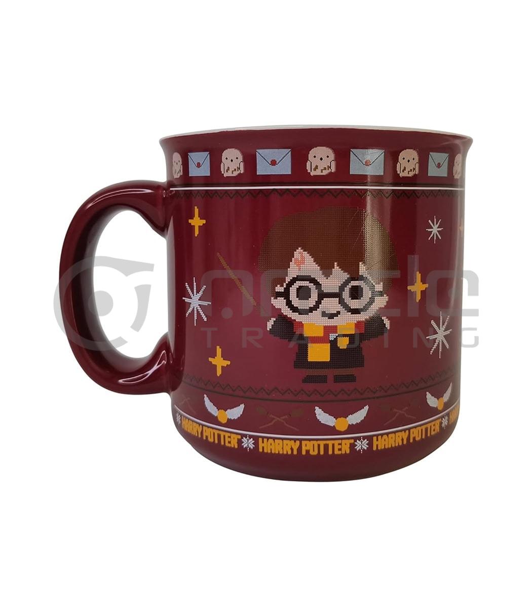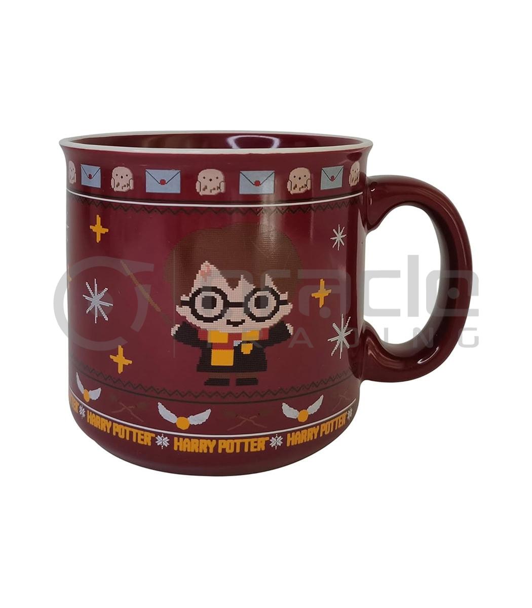 The Harry Potter Jumbo Camper Mug – Sweater holds 20 ounces and stands 4 inches high by 4.5 inches wide. Made of durable ceramic and officially licensed, this mug brings Hogwarts charm to any drinkware selection. Perfect for wholesale purchases, it suits themed collections, fan gifts, or retail displays seeking wizardry appeal with practical size and lasting design.