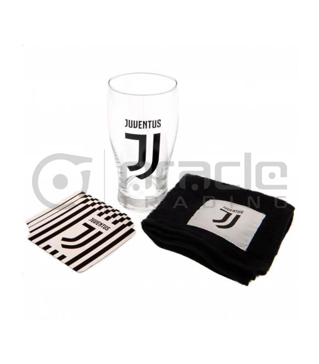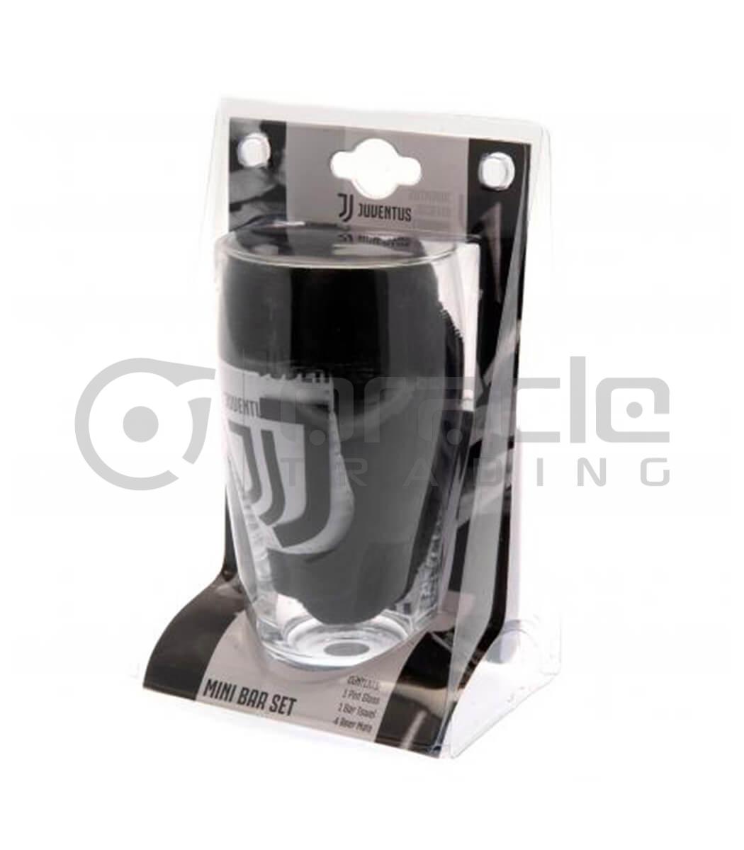 The Juventus Mini Bar Set is a perfect addition for soccer fans who enjoy a drink. This set includes a pint glass, a bar towel, and four coasters, all featuring the iconic Juventus branding. Each set is presented in retail packaging making it a versatile choice for various retail environments. As an officially licensed product, it ensures true team representation. This drinkware set is ideal for adding a touch of team spirit to any gathering or celebration.