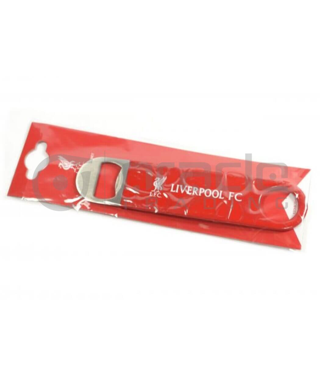 The Liverpool Bottle Opener Magnet features stainless steel construction measuring 7 inches by 1.5 inches. This functional magnet combines team loyalty with practicality for use on any magnetic surface. Packaged with a retail header card it supports convenient display and storage. As an officially licensed product it represents Liverpool with clear branding and durable design suitable for a range of retail settings.